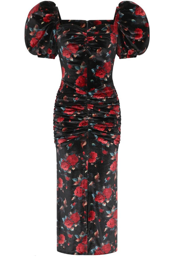 Tay áo phồng, thắt lưng và vải nhung đỏ tươi: Black Halo có hình ảnh mẫu mực cho một chiếc váy kỳ nghỉ.
