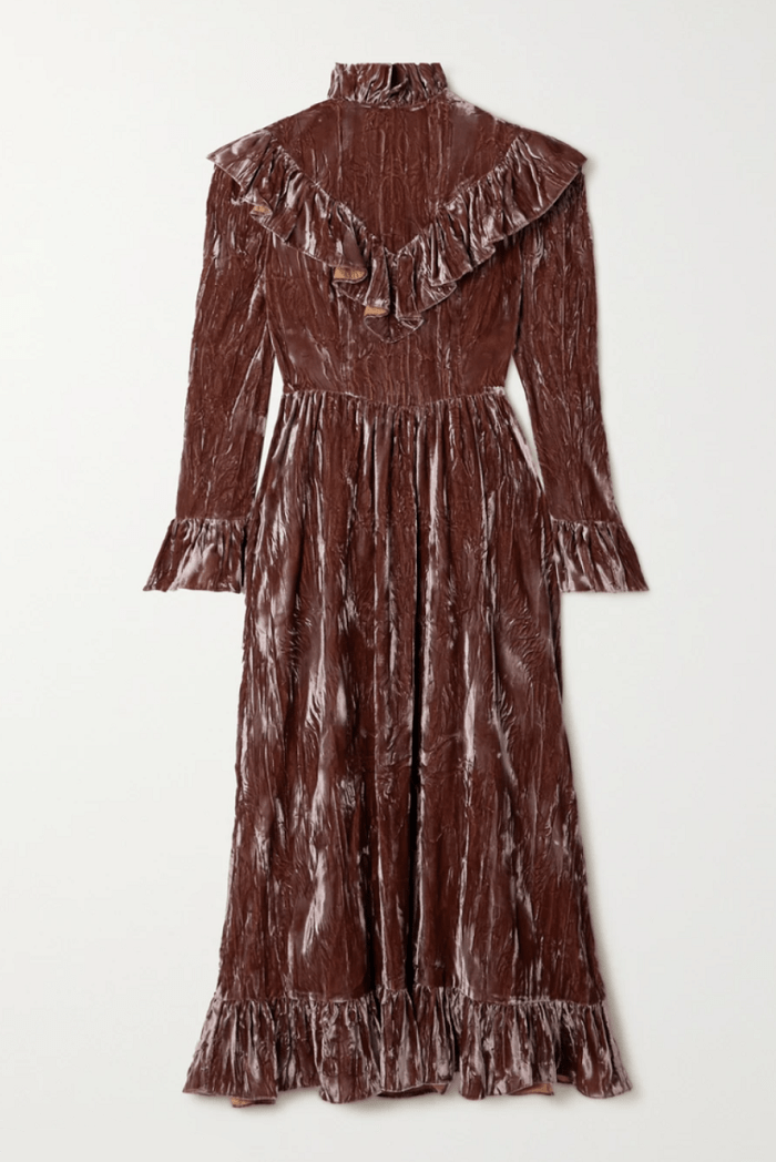 Carol Ruffled Crushed-Velvet Maxi Dress - Đầm maxi nhung xếp nếp