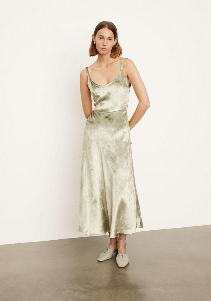 Không có gì ngột ngạt về chiếc slip dress hiện đại này. Màu quả hồ trăn rất đặc biệt, bạn sẽ chỉ cần một chiếc khuyên tai tối giản để có một bữa tiệc trọn vẹn.