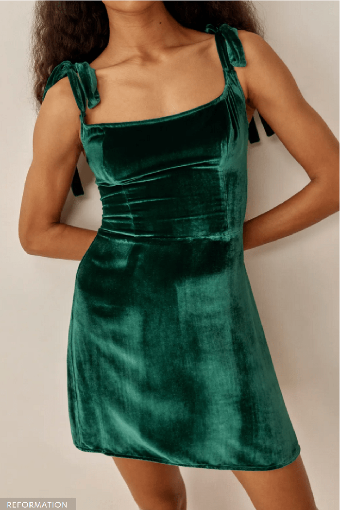 Chiếc mini ngọc lục bảo này có rất nhiều lớp xếp tiềm năng. Nhưng nếu bạn thích váy hoặc tay áo dài hơn, pay a visit to Ref's very expansive, partially on-sale velvet section.