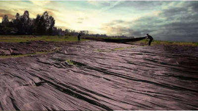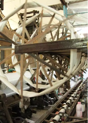 Lụa được phơi trên cỏ có độ cứng đủ để nâng vải hứng nắng,