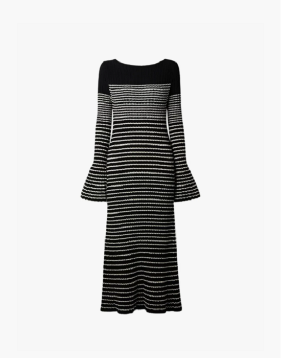 Vải dệt kim sọc đã trở thành mặt hàng chủ lực trong tủ quần áo được tạp chí Vogue phê duyệt và hiện có sẵn dạng váy midi dệt kim tay chuông của Proenza Schouler.