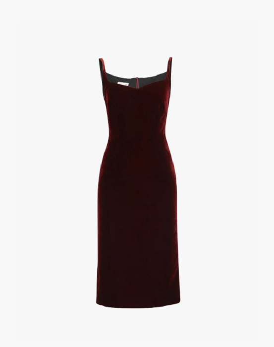 Với độ dài vừa phải, dáng chữ A và đường viền cổ áo ngọt ngào, chiếc váy Doss nhung đỏ đậm của Dries Van Noten mang phong cách cổ điển thanh lịch mỗi khi chúng xuất hiện.