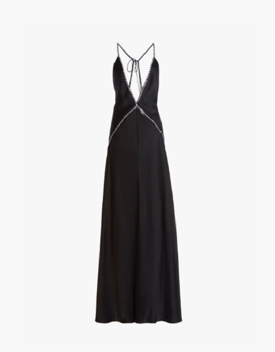Chiếc váy bóng mượt, mát mẻ dễ dàng của Stella McCartney được hoàn thiện với số lượng đồ trang trí phù hợp.